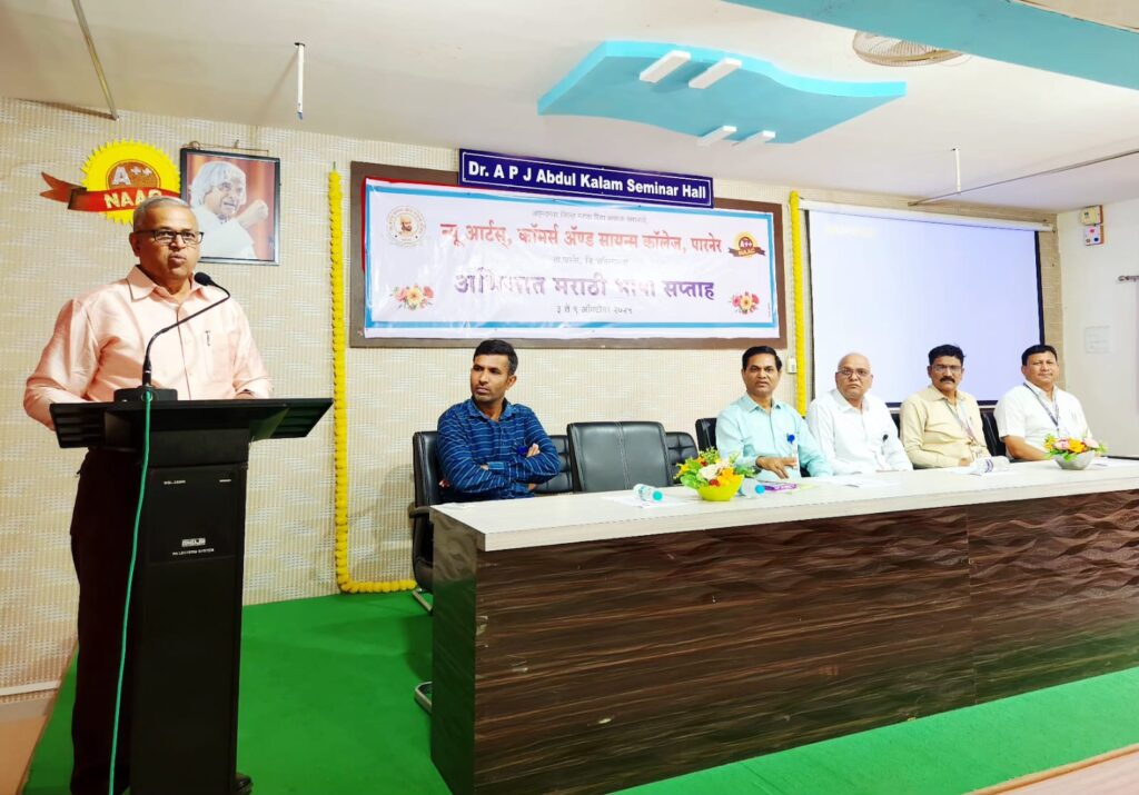मराठी भाषेचा सन्मान आणि गौरवशाली वारसा टिकवण्यासाठी केवळ भूतकाळात न रमता वर्तमानात सक्रिय कृती करणे आवश्यक आहे, असे महत्त्वपूर्ण प्रतिपादन ज्येष्ठ साहित्यिक व भाषा अभ्यासक प्रा. डॉ. विजय काळे यांनी केले. न्यू आर्टस्, कॉमर्स अँड सायन्स महाविद्यालय, पारनेर येथे ‘अभिजात मराठी भाषा सप्ताहा’ निमित्त आयोजित विशेष व्याख्यानात ते बोलत होते.