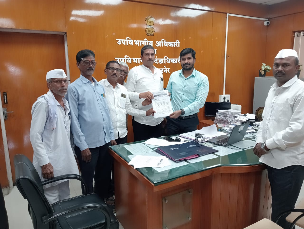 पारनेर तहसीलच्या ३५० प्रकरणांवर कार्यवाही सोबत छत्रपती शिवाजी महाराज महाराजस्व अभियानातील गाव निहाय सिमांकन या पार्श्वभूमीवर महाराष्ट्र राज्य शिव पाणंद शेतरस्ता चळवळीचे प्रणेते शरद पवळे यांच्या नेतृत्वाखाली शेतकऱ्यांनी उपविभागीय अधिकारी डॉ. श्रीकुमार चिंचकर यांना निवेदन देण्यात आले.